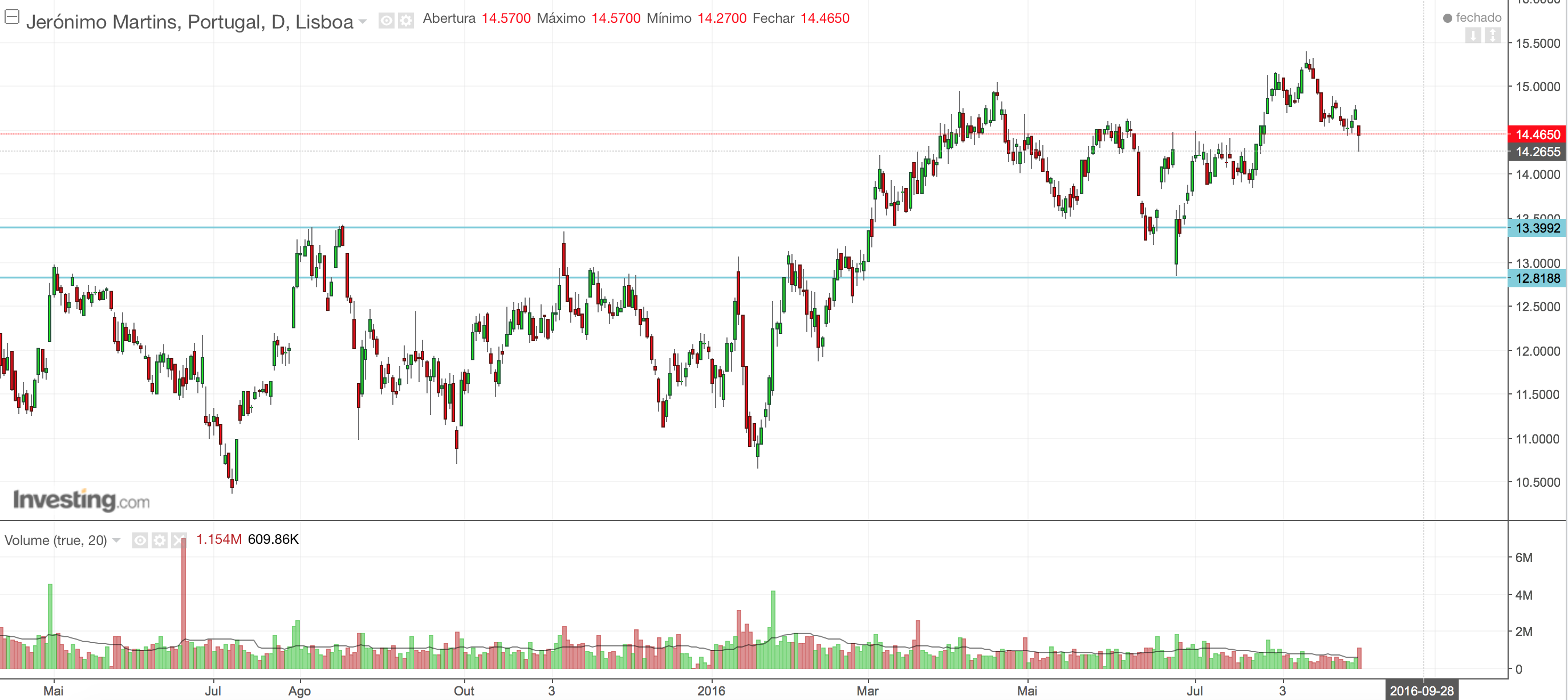 a experiência ensina que não vale a pena procurar explicações para os movimentos bolsistas, e muito menos dar crédito a PTsgiestal Escreveu:Que se passa hoje com a JM? Ida ao suporte ou mais do que isso? Não encontrei nenhuma recomendação negativa para provocar a gap e a queda que se está a verificar na abertura... Não tenho posição. BN!