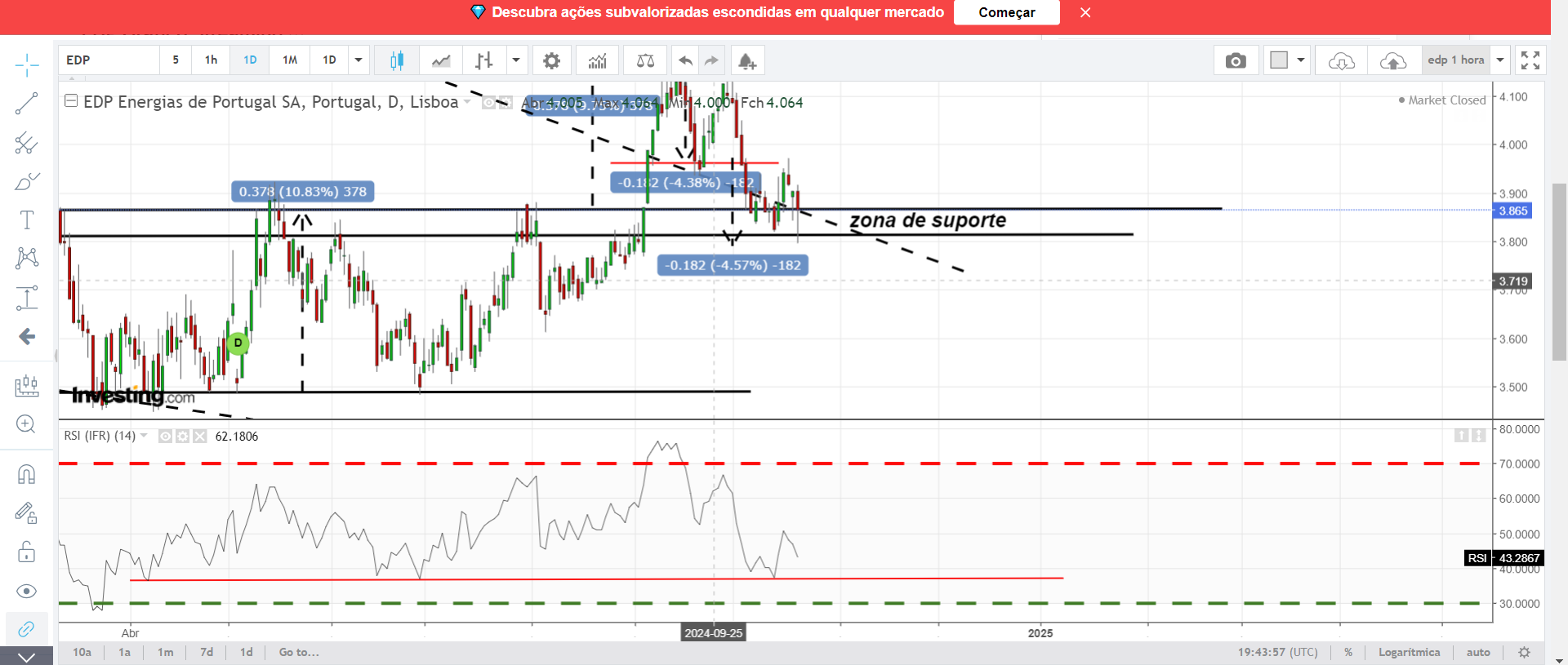 Agora será que teremos uma nova reação na zona de suporte ?? No meu gráfico a edp ainda mantêm figura até os 4.30 resta saber se ainda chega este ano lá