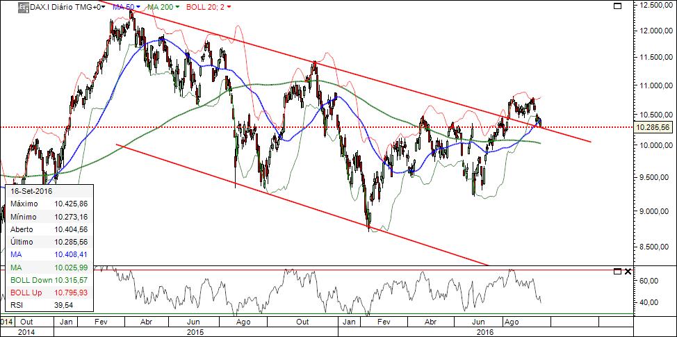 para mim O DAX anda em paralelo com o NAS, excepto em raras situações, dado que o NAS está em bull bull, graças á Apple. No entanto a Apple fez um bearish Harami na sexta e está mesmo no sobrecomprado. Por outro lado pode ser que estas explosões em NY e ataque á faca em Minnesotta voltem a agulha das eleições para o doido do Trump, o que vai balouçar as praças...