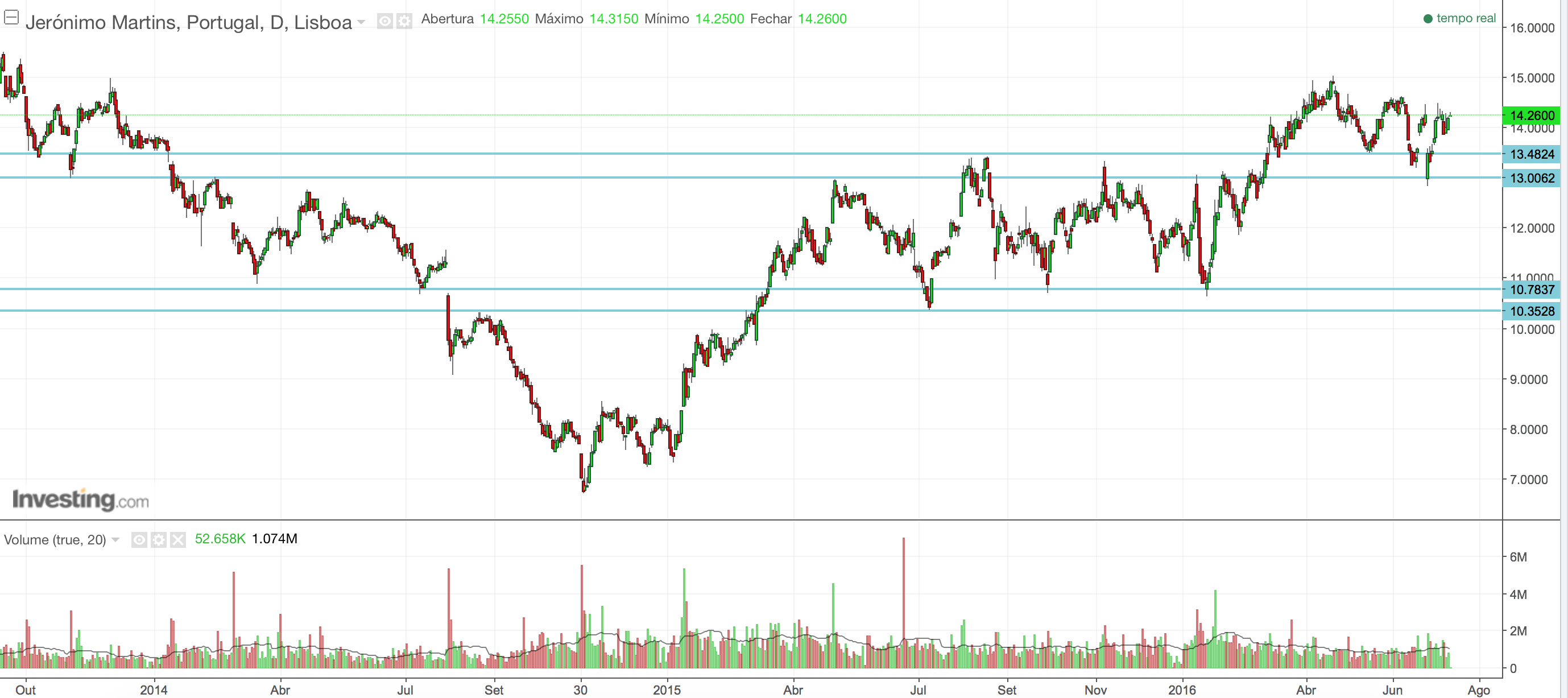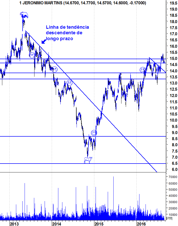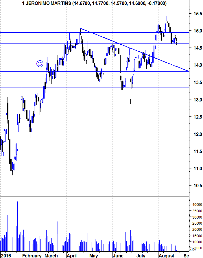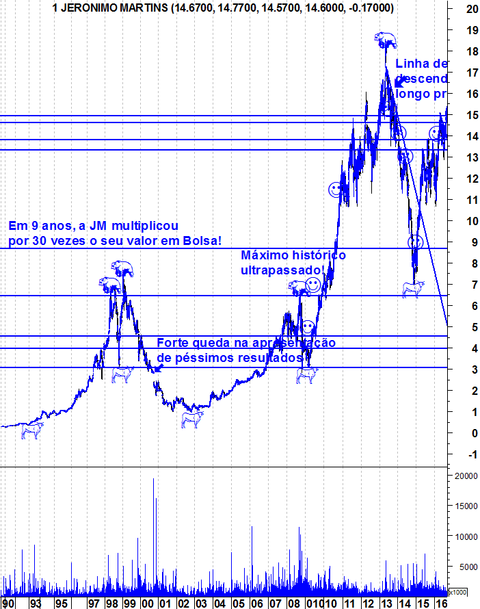 Não faço ideia se vão aos 16 ou 20 ou 30. É sempre para mim muito complicado definir isso, nem é o meu objectivo nas análises. O que te posso dizer é que mantenho o optimismo que venho manifestando em relação à JM desde o início de 2015. A acção continua sem dar qualquer sinal de fraqueza e, enquanto isso não suceder, mantenho o meu fato de touro vestido.