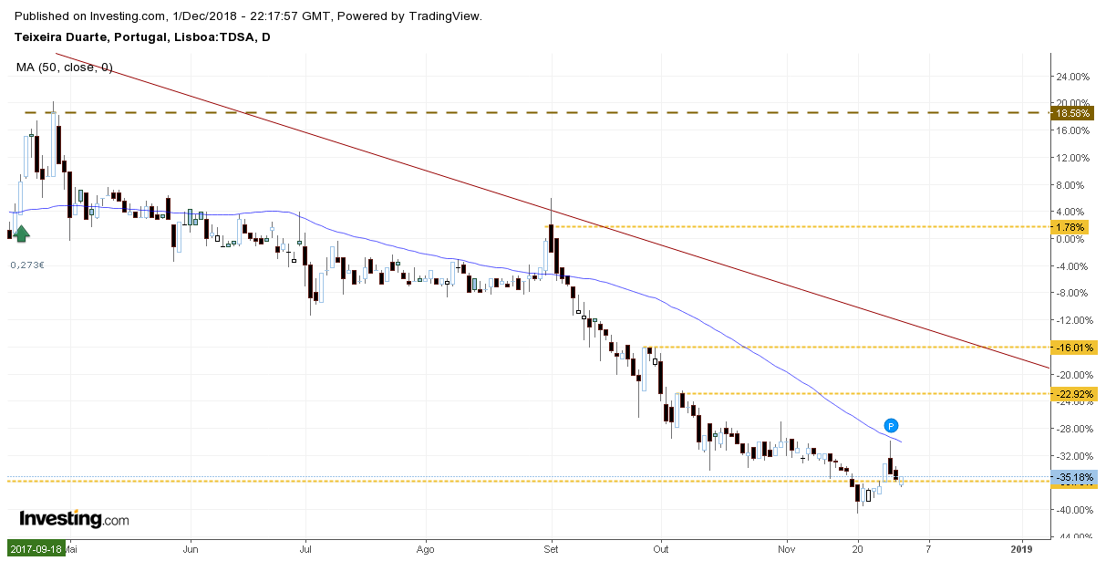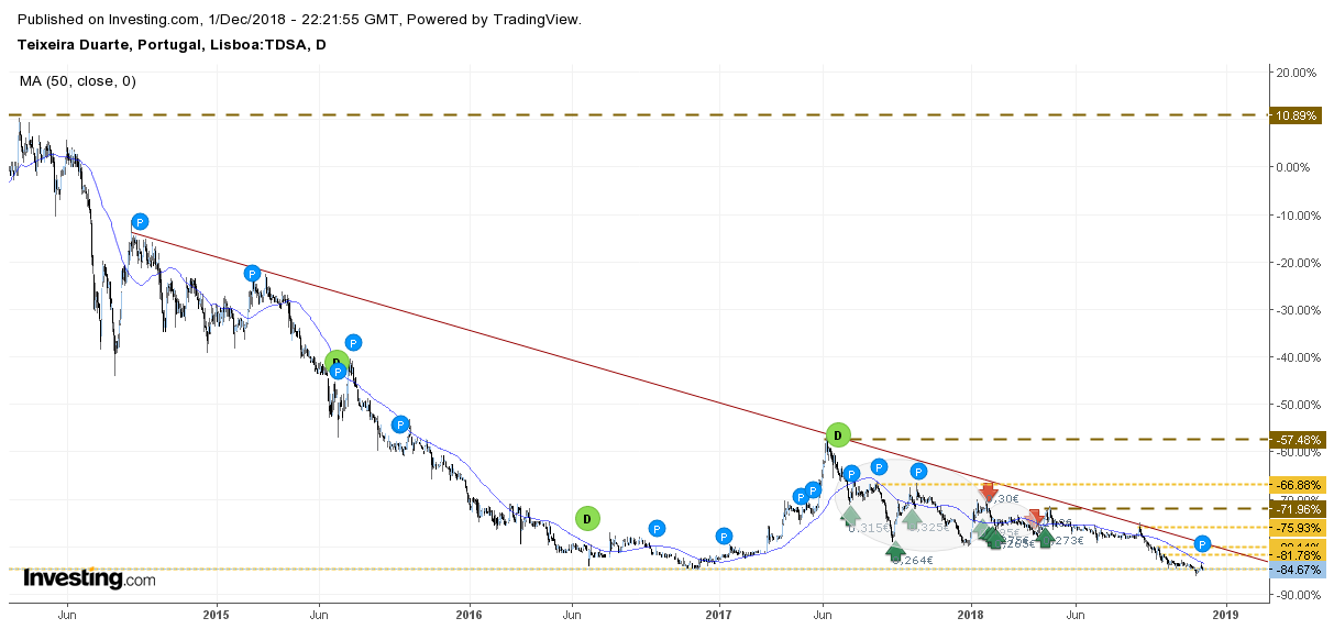 E está em mínimos históricos, o que pode funcionar como suporte... A Mota ainda tem de cair 40% para lá chegar. Ainda que o facto de estar em mínimos só por si não seja sinal de compra, mas é inevitavelmente forte suporte.