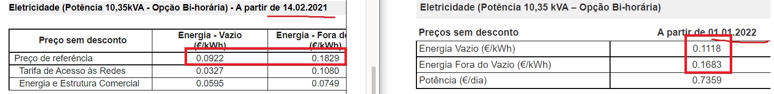 Fiz vários telefonemas para os outros (EDP, Endesa, Iberdrola, etc) na óptica de um novo cliente. Qual o custo unitário €/kWh para uma tarifa simples e potência instalada 6,9kVA. Os valores são diferentes, há dificuldades em comparar devido ao marketing (campanhas, descontos, actualização dos preços para breve, incluir gás ou não, etc).