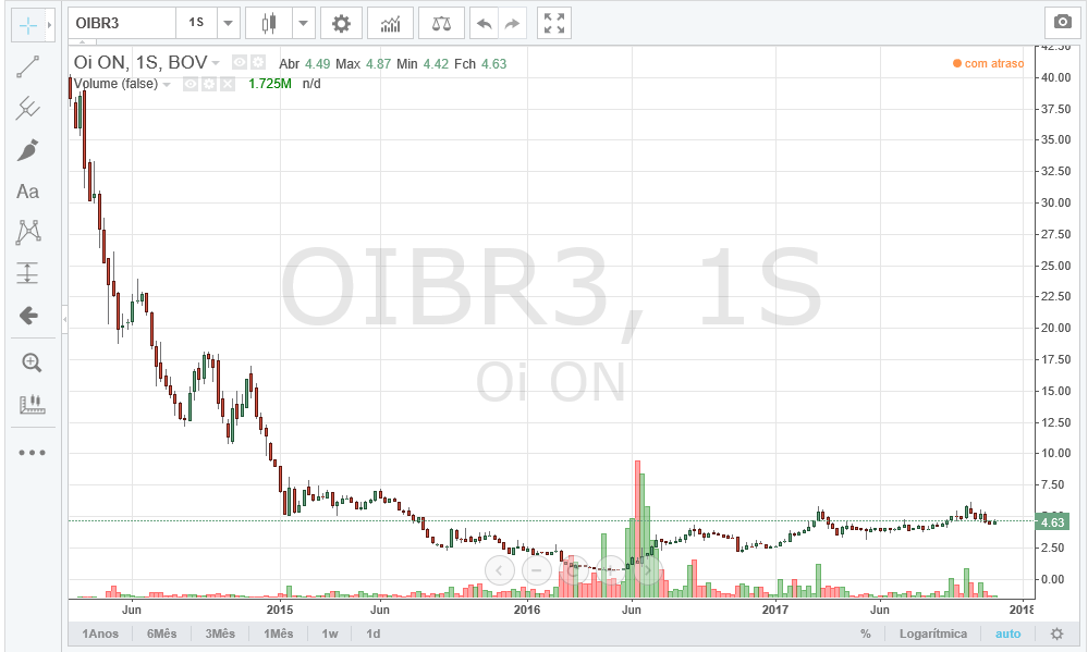 Gráficos - OIBRC_ADR NYSE base diária , abaixo da LTA de longo prazo / OIBR3 base semanal / OIBR3 base diária