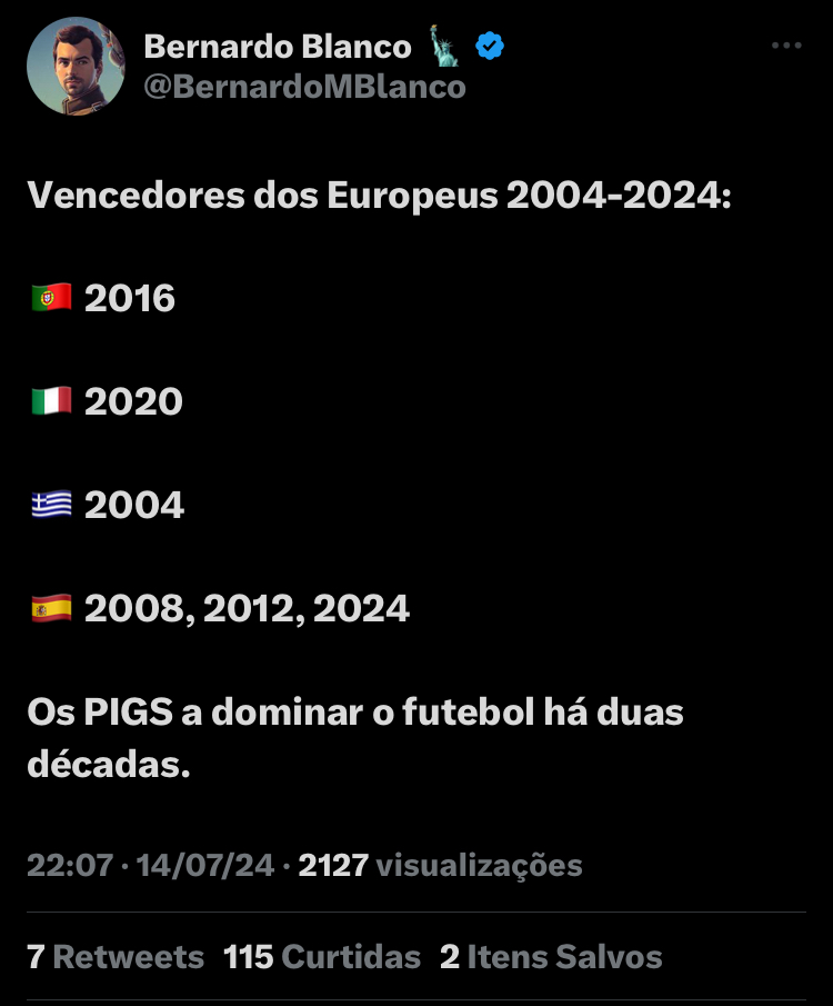 previsor Escreveu:Não são os melhores na economia e finanças, mas são no futebol