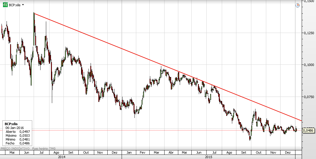 mas o suporte dos 0,20 era sempre o melhor ponto de entrada, muitas vezes apesar da ema20 passar nos 0,21 por exemplo..utilizei nessa altura muitos stops...mas quando o bcp fez o ac2014 nunca mais a usei, porque começou a caír com efeitos do BES.... e nao existia AT que ajudasse... já os suportes ajudavam por momentos...