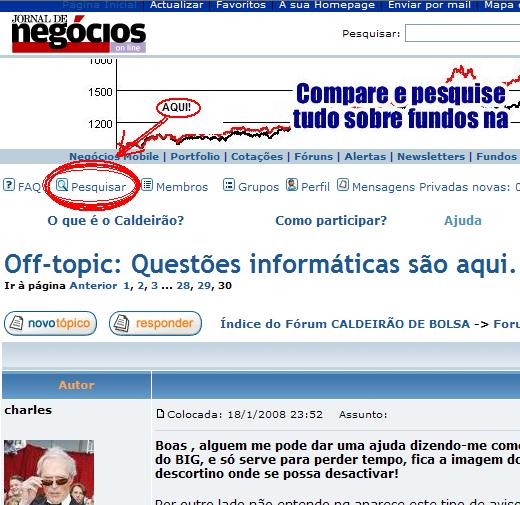 MoneyInMoneyOut Escreveu:Alguém me pode dizer como posso fazer pesquisa sobre os tópicos do forúm?