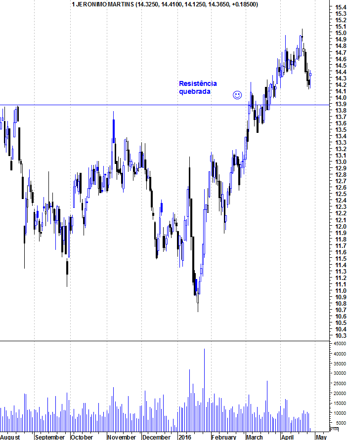 só nao sei se terá alguma resistencia perto dos 14€. Nao sei se nao será melhor ficar liquido agora em Maio até voltarem os tempos mais frescos (Outubro).