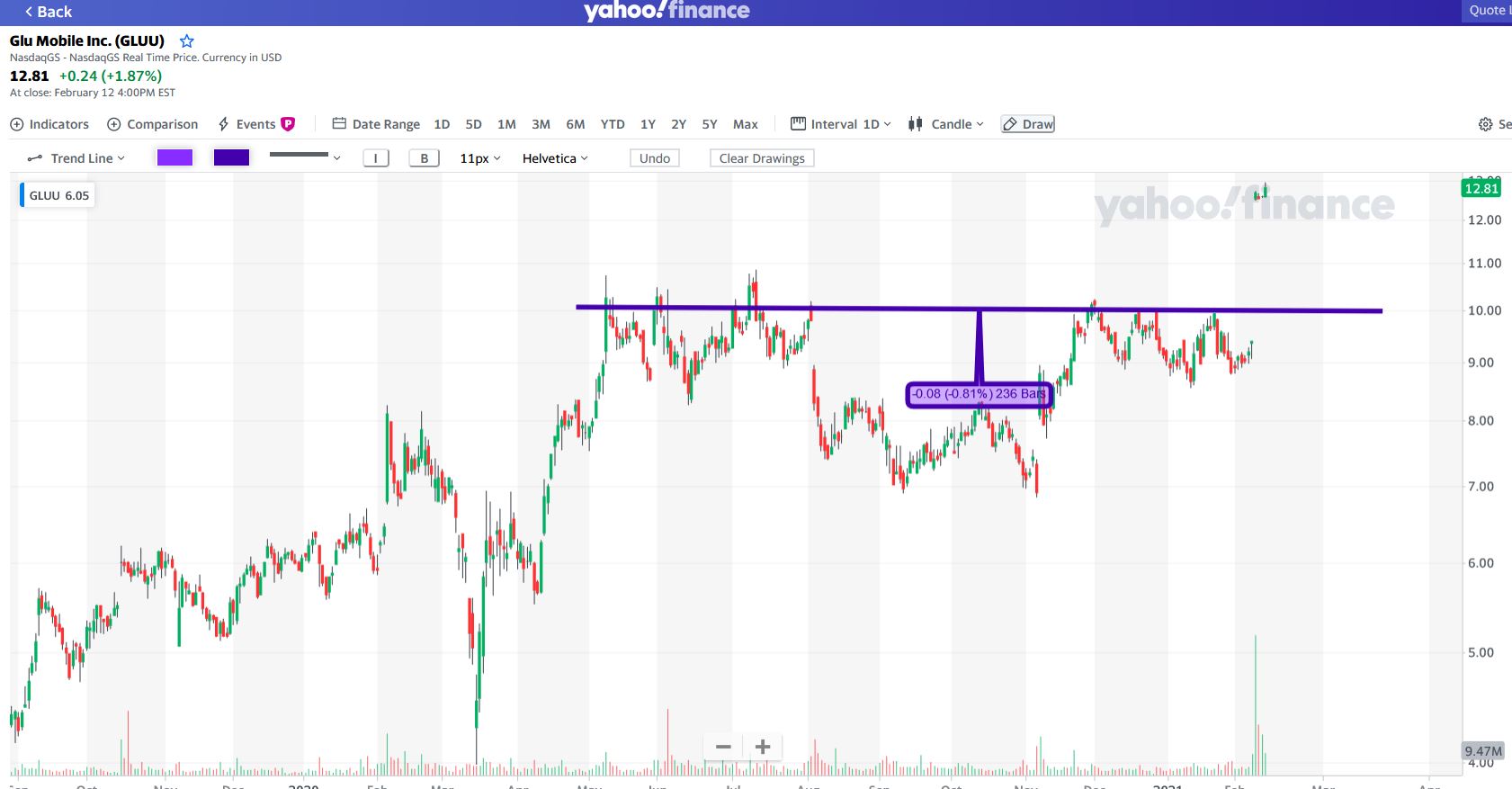Viva rg6803, para mim um bom ponto de entrada seria no teste do suporte 11,00usd ir acompanhando, se este suporte não aguentasse, viria ao suporte de 9.50usd, nessa altura se veria, mas sim é um titulo a seguir nos proximos tempos, eu não sigo ações.
