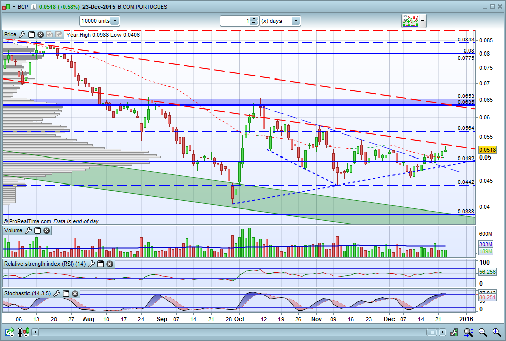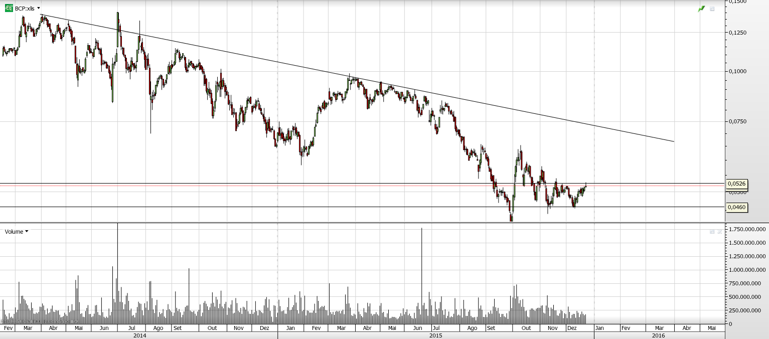 Com o regresso do volume diário normal para os padrões do BCP (300M) aposto na subida vertiginosa da cotação o que a acontecer será a cópia do ano passado com a benesse de que as boas notícias estão para chegar (fim do drama polaco,NB e pagamento dos CoCos).