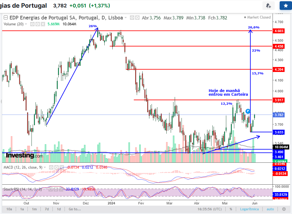 Eu entrei ao fecho da passada sexta-feira mas não acredito que neste movimento passe muito para lá dos 3,90/3,95.