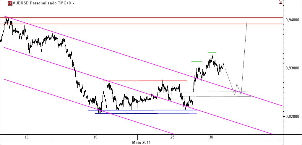 Todo o trade tem uma dimensão de preço (entrada e saída) e tempo. Cada plano deverá prever tais dimensões, entre outras coisas. No gráfico do usdjpy "queria-se" que o preço tivesse penetrado a zona assinalada no respectivo espaço temporal para encontrar a linha de resistência (a vermelho), originando a queda para o target. Verificou-se que assim não sucedeu, sendo que tal teste veio a ocorrer muito mais tarde do que o previsto no plano. Por isso, e por se aproximar o fim de semana, o plano traçado para esta oportunidade especulativa dizia-me para retirar a ordem pendente. Caso ela tivesse sido executada (com, por ex., uma venda ao mercado", o que poderia desde logo contrariar o ratio r:r 1/3, mas isso dependerá de cada um), seria importante a colocação da stoploss no b/e logo que o preço se encontrasse a cerca de metade do target, com ou sem retirada parcial de proveitos. A ter acontecido esta deslocação para b/e, a ordem terá sido executada.