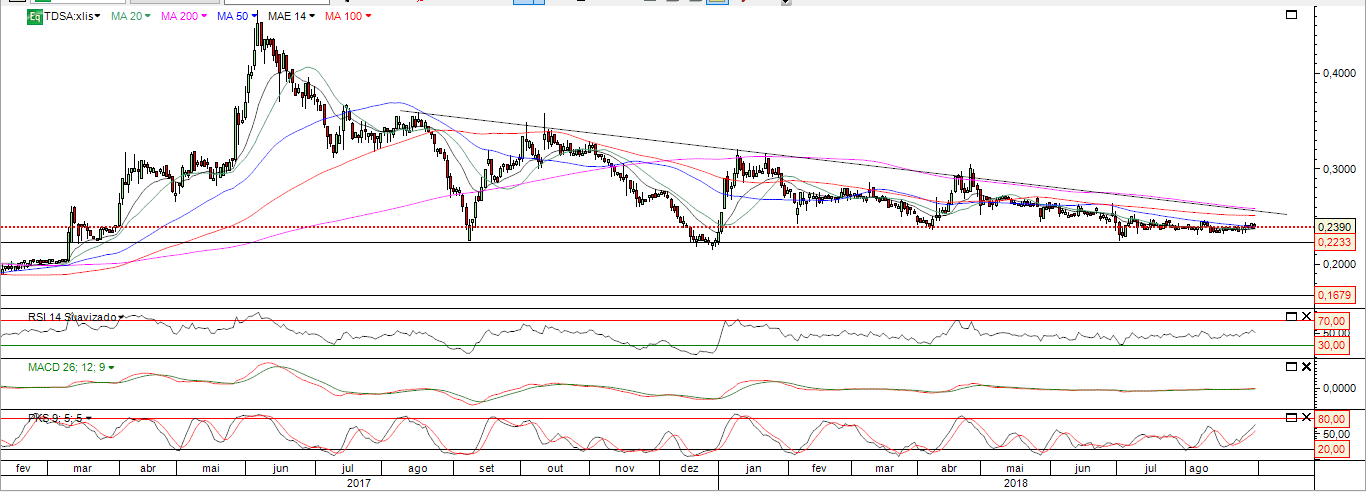 Aqui o próximo suporte da cotada estará nos 17 cêntimos