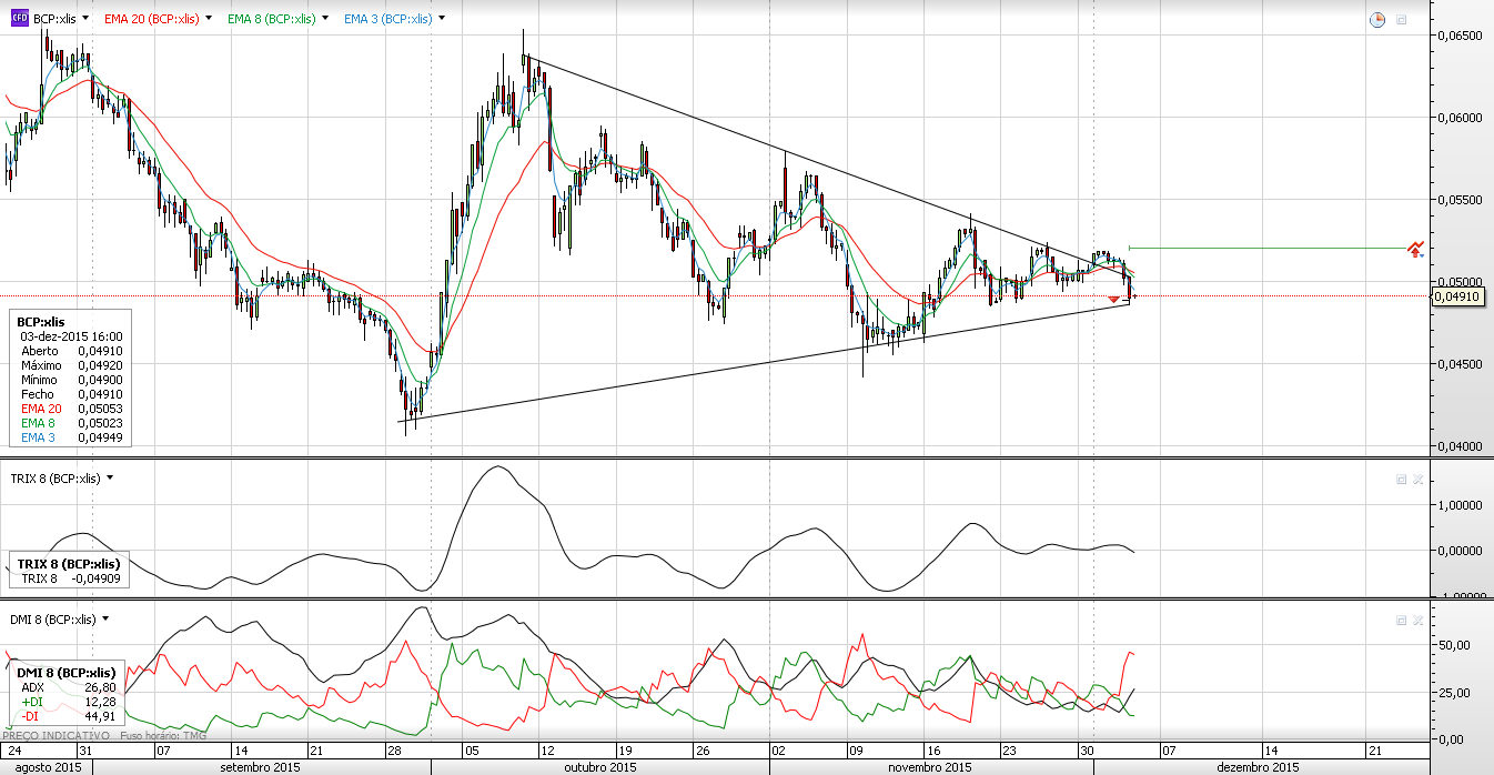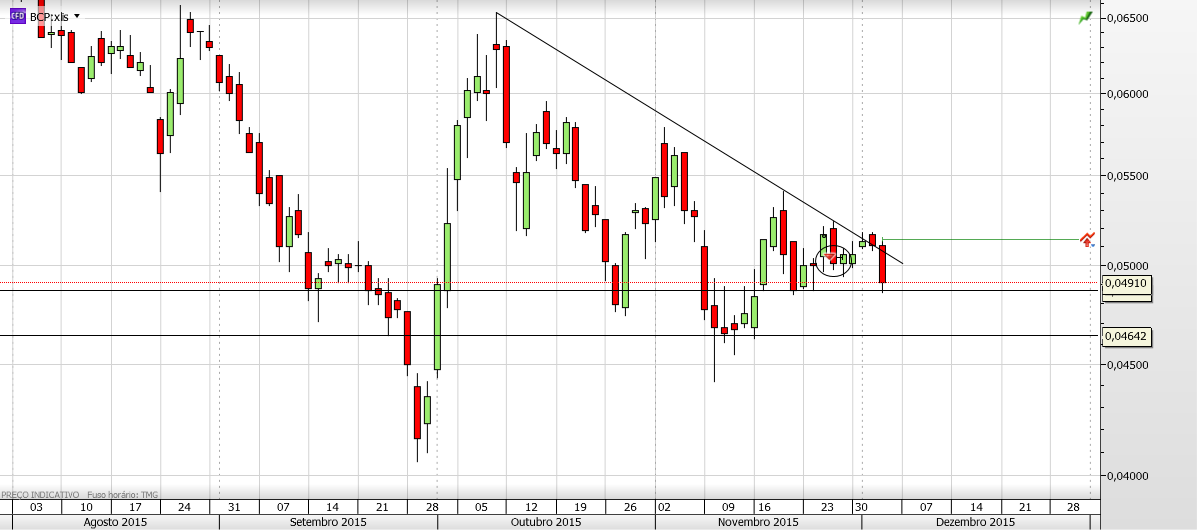 Olhando para os graficos , hoje temos no BCP 3.5 em posições curtos, + ou - o mesmo que tinham em 15/9/2015 cotação na altura estava nos 0.0485( praticamente a rondar o mesmo valor), baixou ainda mais durante quinze dias até aos 0.0415 no dia 30-9-2015.