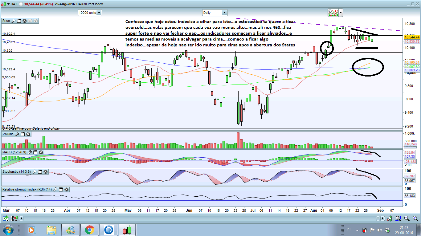 Ha 2 semanas que as coisas andam a correr bem...mas hoje cometi um erro que nao cometi na semana passada...que é nao ter medo de fechar a posicao se sentir que algo esta a mudar e nao ficar para ver...nao fechei a posicao dos 530 e devia ter fechado...porque continuo a espera do fecho do gap para depois o dax virar a boneca e ir rebentar com os 10800!