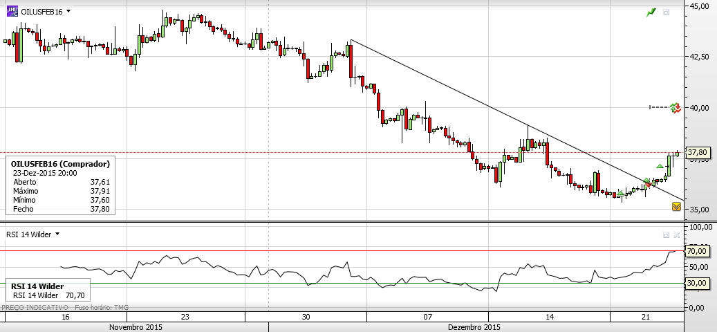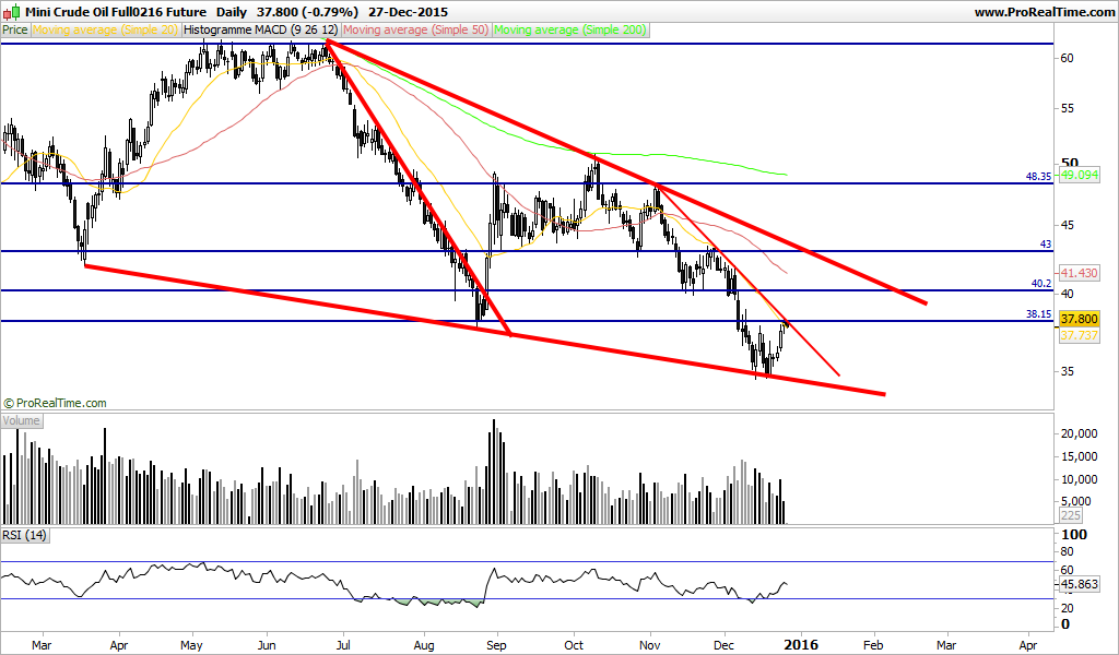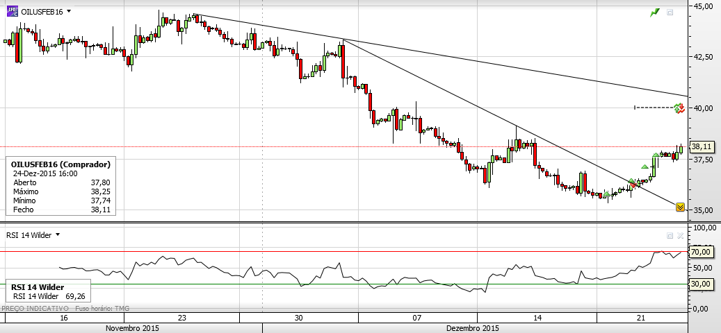 Teremos que esperar um pouco para ver se vai lá ou se cai novamente para valores abaixo de 35 USD. Para 2016, os fatores fundamentais (que podem sempre mudar) continuam a indicar quedas, embora a margem seja cada vez menor. Não sou apologista dos tais 20 USD / barril (salvo em cenário de recessão global), mas não me admiraria um ataque aos 33 e mesmo aos 30 USD. E também há a influência das cotações do próprio USD, face às restantes divisas. Aqui podemos ter um cenário mais complexo.