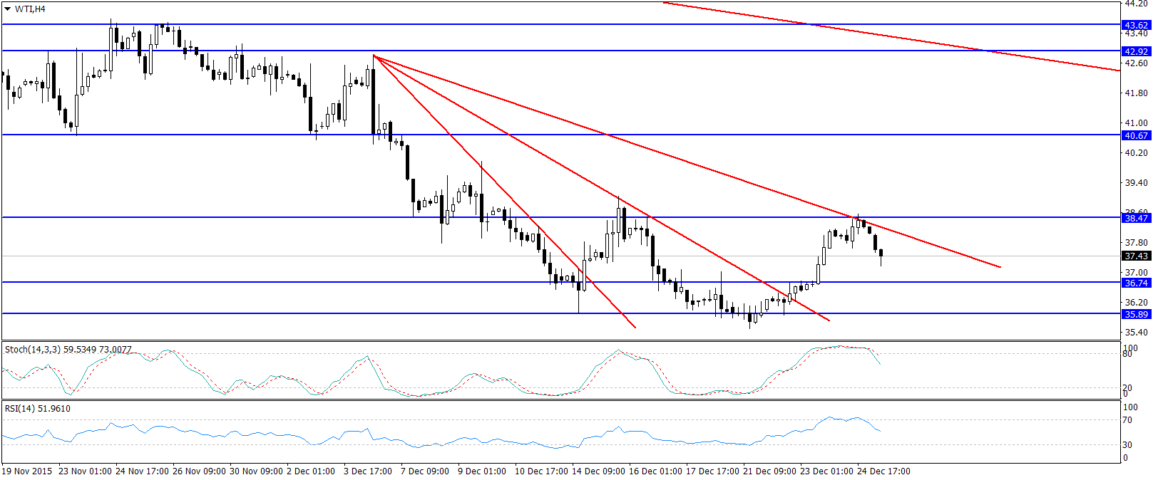 a reacção era bastante provável pois trata-se de um teste a anterior mínimo... enquanto estiver acima dos $36 (WTI) forma uma figura de inversão (W) com potencial para ir ao topo da LTD de médio prazo/topo da cunha, pelos $43, nível também de anteriores mínimos.