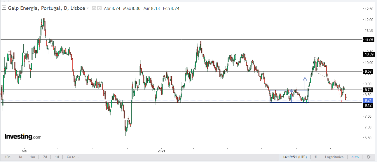 A Galp acabou por quebrar em baixa a zona de suporte pelos 8,70 e continua sem sinais de força.