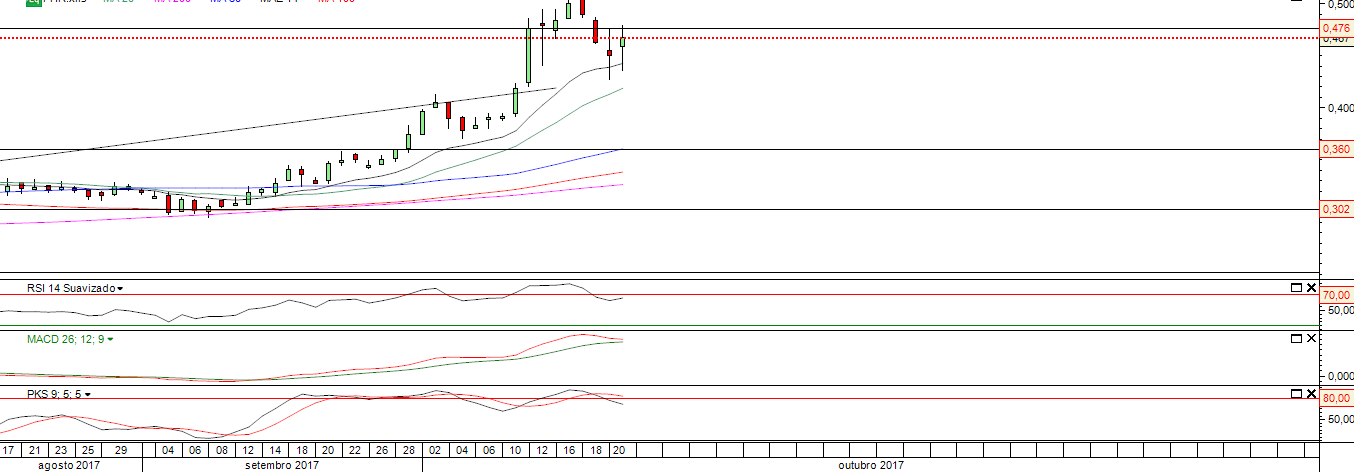 foi a máximos do dia nos0.479€, aliviou, e agora prepara-se para atacar novamente.