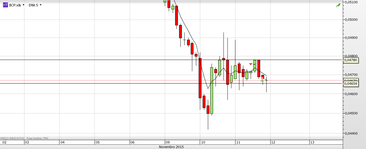 Na sequência do gráfico que apresentei no inicio da página, tive sinal e abri curto no BCP; provavelmente para fechar amanhã, veremos.