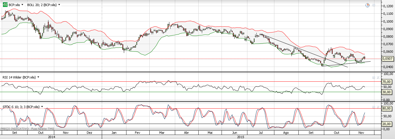Eu estou longo no BCP no entanto acho que a SMA200 no gráfico de 4h pode dar luta ou ate mesmo levar a uma inversão no curto prazo. Se o fizer estou com o dedo no bobotao para abrir um curto