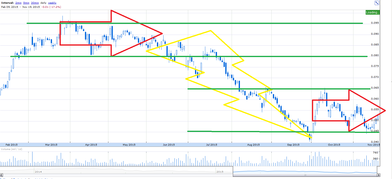 eu tive esperança que a lateralização em abril/maio fosse resultar na subida da ação e foi o que se viu. agora só lá ponho os pés novamente quando quebrar a resistência dos 6.5 cents (e para isso ainda tem de subir mais de 20%..)
