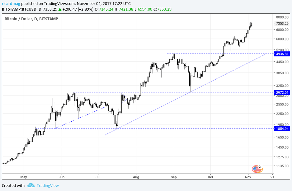 Na Bitfinex disparou para um pico a 7899.9 USD: "Parece-me que as notícias sobre a minha morte são manifestamente exageradas." (Mark Twain)