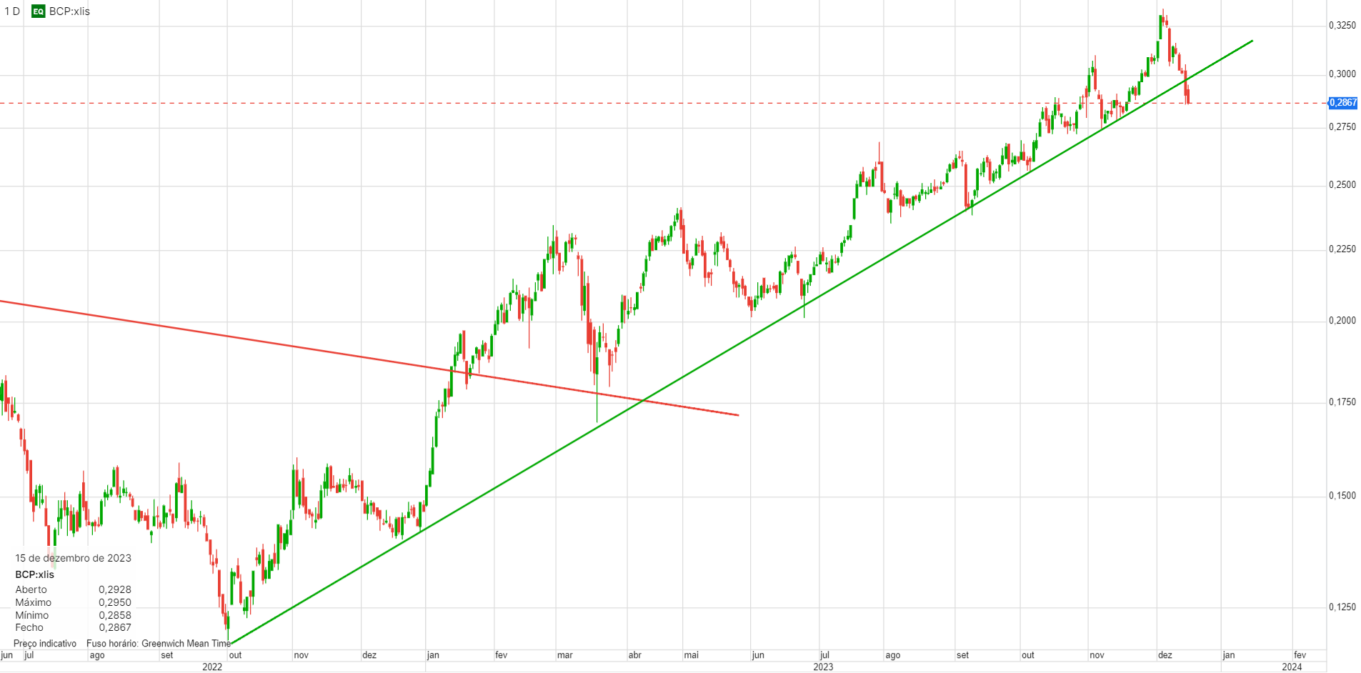 Na minha opinião, ainda não quebrou a LTA, mas está no momento de ela reagir, entre os 0,285 / 0,29€.