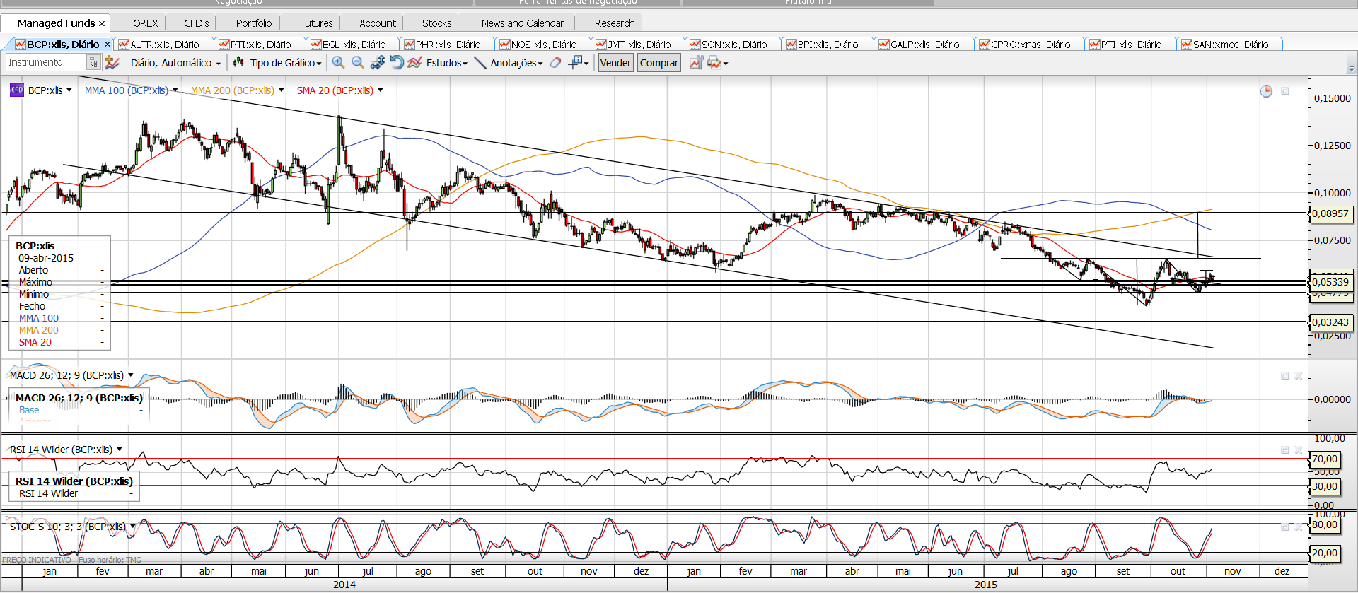 Eu nunca disse que o BCP ia cair, apenas disse que tecnicamente a tendência era (e no médio e longo prazo continuar a ser) de queda... nunca disse que a AT é infalível, antes pelo contrário, sempre disse que todos os métodos de análise têm muitas limitações, mas são a única coisa a que nos podemos agarrar. Eu questionei e questiono estratégias de investimento de reforços sucessivos em títulos com tendência de queda, embora também tenha dito que quem sabe analisar bem os fundamentais não deve olhar para a AT...