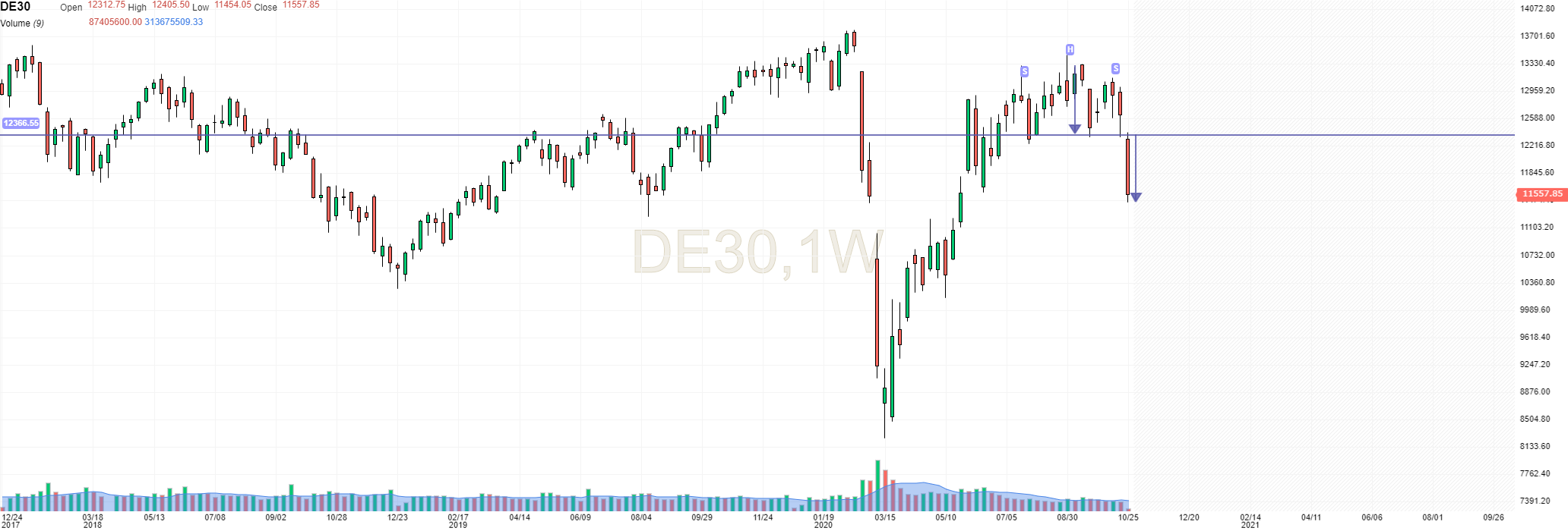 Eu diria que há um HS que se atingiu agora o target. Estou na expectativa de que exista pelo menos algum ressalto para aliviar pressão vendedora, mas o panorama parece que está de feição para os ursos no longo prazo.