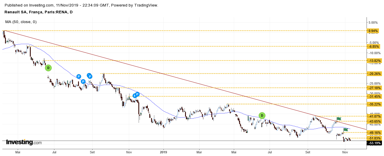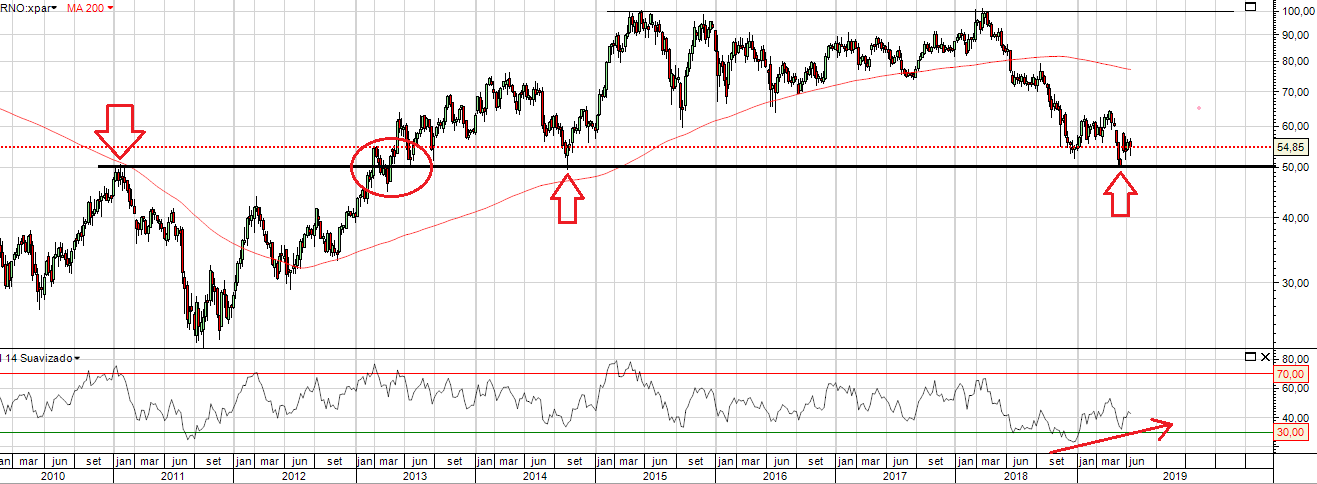 A Renault veio visitar novamente o suporte dos 50€ e teve uma boa reacção. Apareceram os bulls e seguraram.