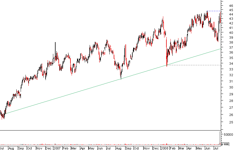 Aproveito para colocar outra dúvida: como se corrige o gráfico da Suez para incorporar a cisão: com correcção em valor absoluto ou percentual? Ela corrigiu 3,39 euros salvo erro no dia a seguir a ter fechado nos 45.