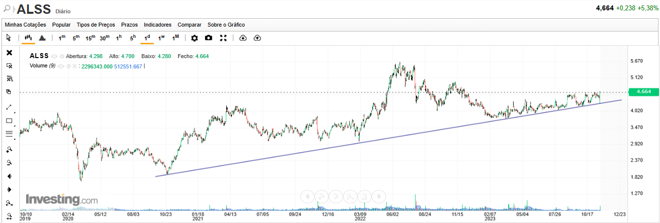 Essa linha tem aguentado a Altri, mas não creio que tenha fundamentais para se segurar muito mais tempo.