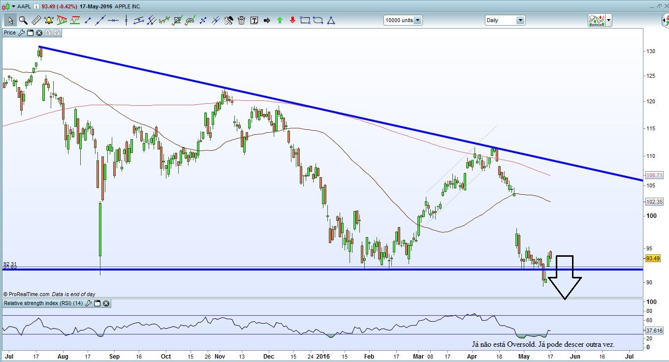 Se forem ao www.stockcharts.com e virem o gráfico da Apple, aquilo está anormalmente oversold!! Não me lembro de ver o RSI assim e ela costuma responder aos oversolds.