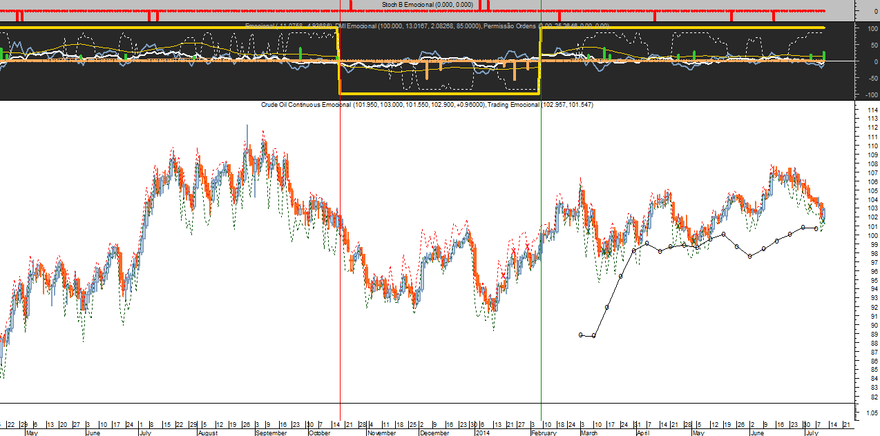 Fica o gráfico diário do sistema de trading “Emocional 2014” na dita mercadoria.