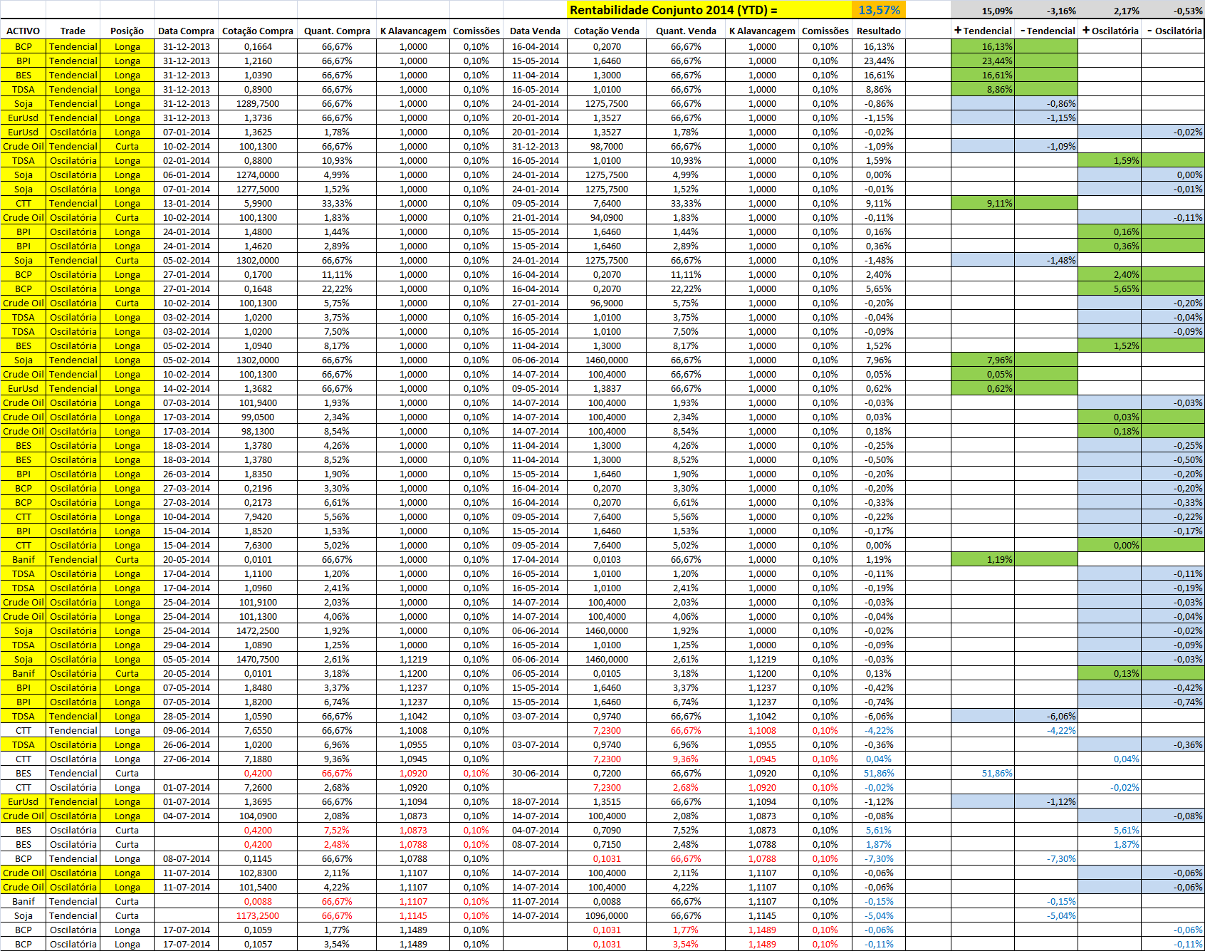 Pois um dos objetivos desta carteira do “Emocional 2014” será exatamente esse mesmo, tentar comprovar que através duma gestão ativa, baseada no seguimento disciplinado dum sistema de trading relativamente eficiente, se pode conseguir bater de forma consistente o índice, embora nesta altura ainda não possa dizer se de forma folgada e clara a longo prazo. Essa será uma conclusão a extrair bastante mais tarde, seguramente daqui a uns anos poderá haver certeza e segurança nesta matéria em função dos resultados reais.