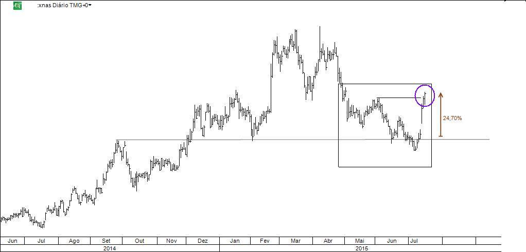 Quebrado o pivot relevante (que equivalerá a uma subida de 2 dígitos), o risco será colapsado.
