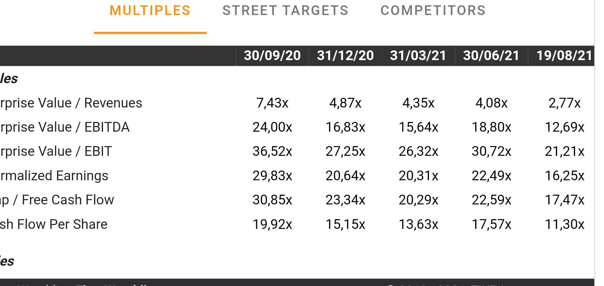 De acordo com o TIKR, que uso, com dados atualizados da cotação de ontem, os valores são outros.