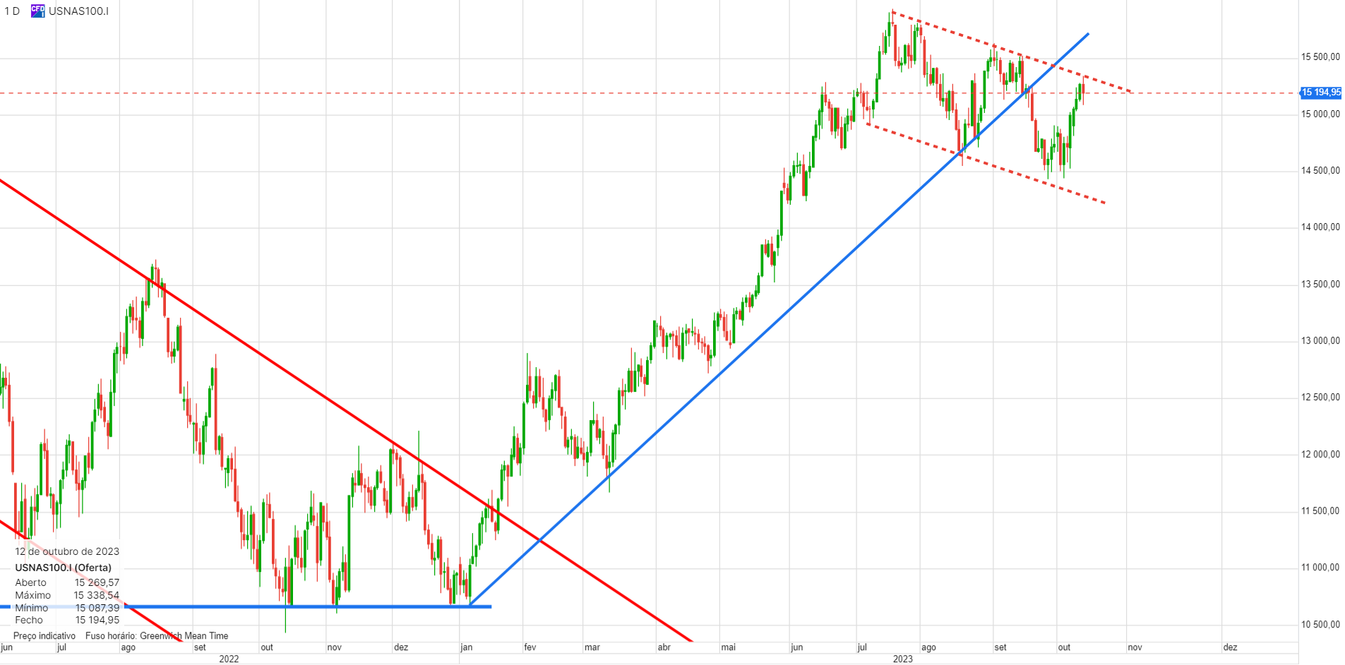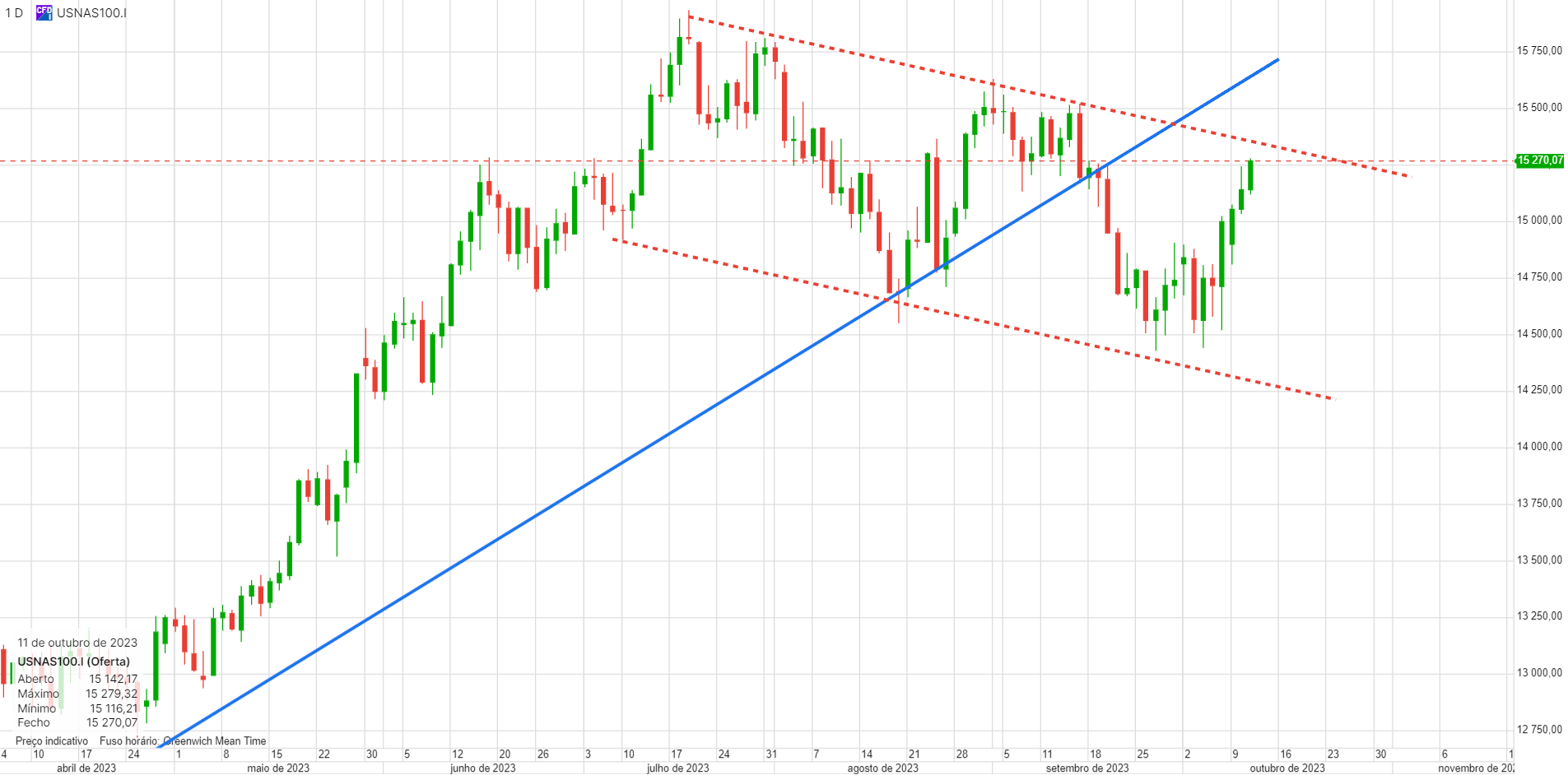 Aqui como no Spx, espaço para subir. Só más notícias da inflação poderão alterar o sentimento dominante.