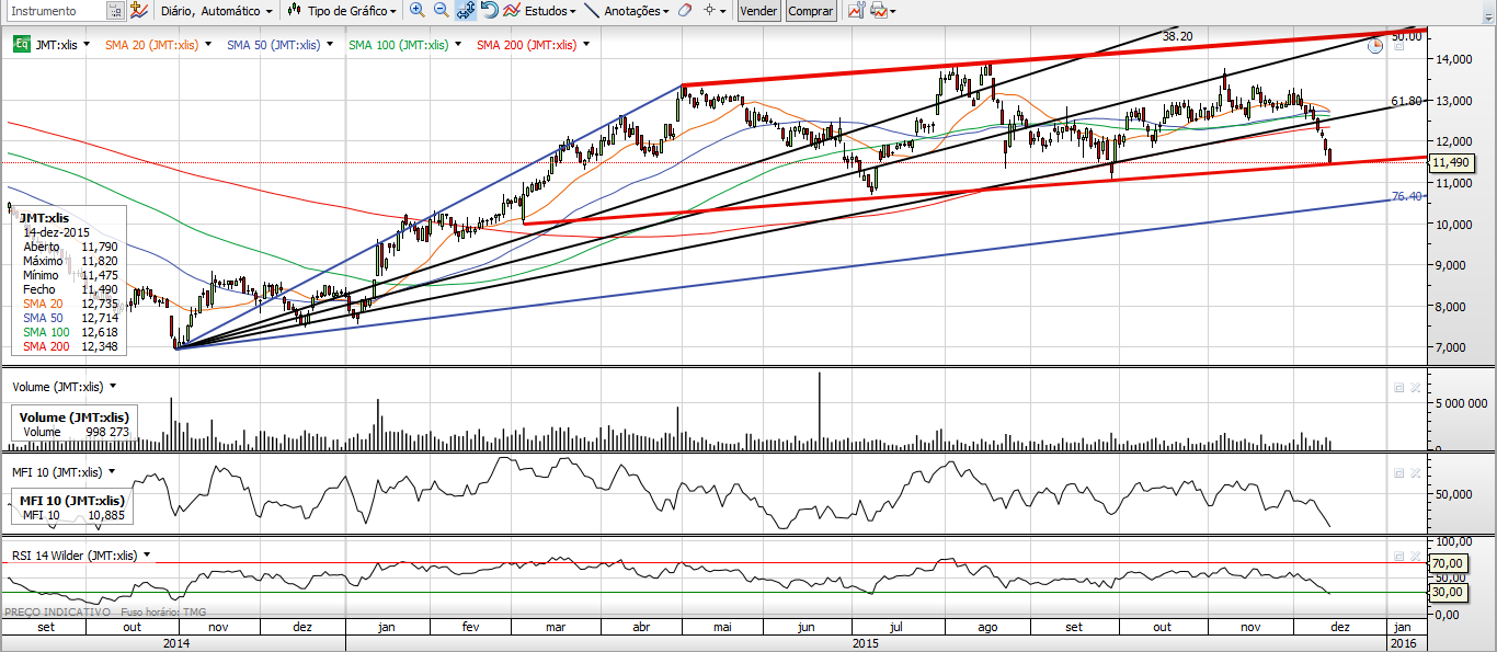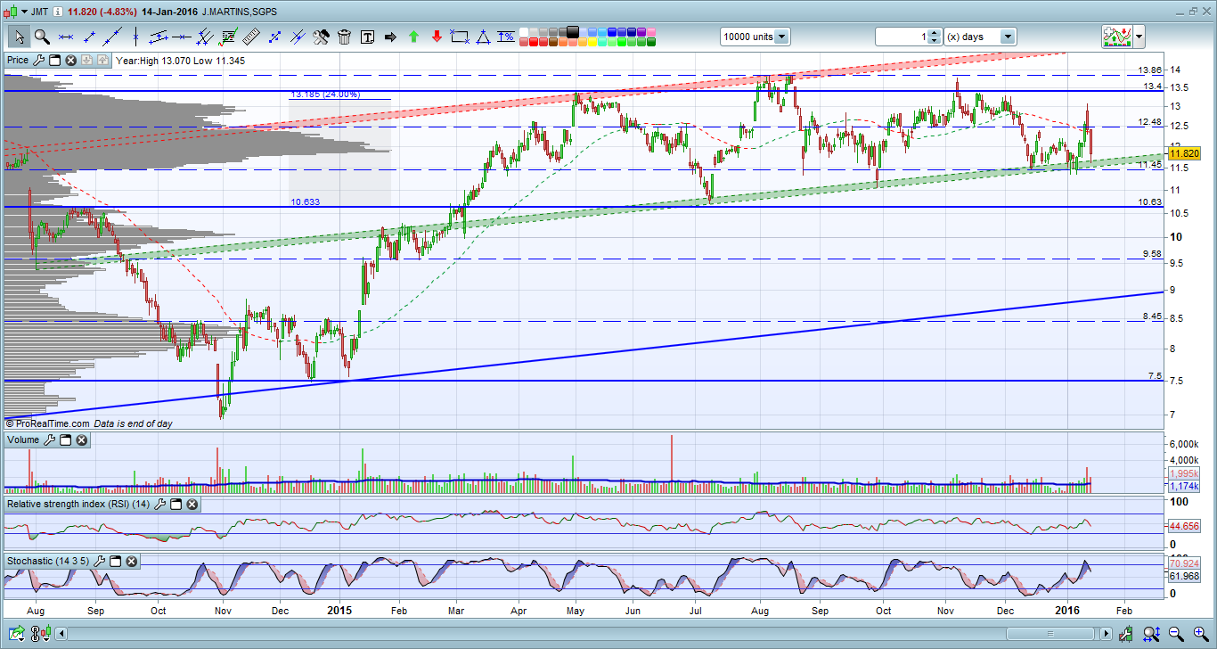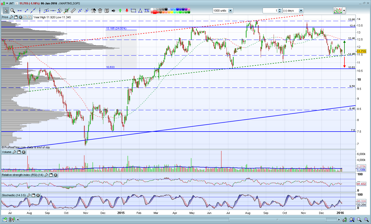 A minha interpretação do gráfico deste titulo leva-me a olhar atentamente para uma possível oportunidade de compra, isto é, caso esta zona dos 11,50 / 11.40 não seja quebrada em baixa, julgo que é um bom momento de compra, podendo leva-lo a médio prazo acima dos 14€, caso contrário, diria que a zona dos 10,60 / 10,50 será o próximo suporte, ou quem sabe, fechar os dois gaps ainda em aberto(Jan13 e 16, 2015), algures entre os 9.03 e os 8,525.