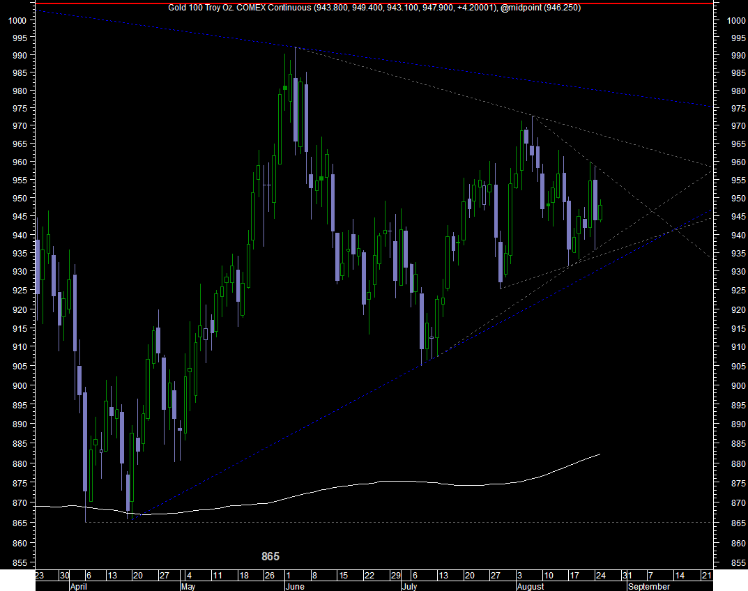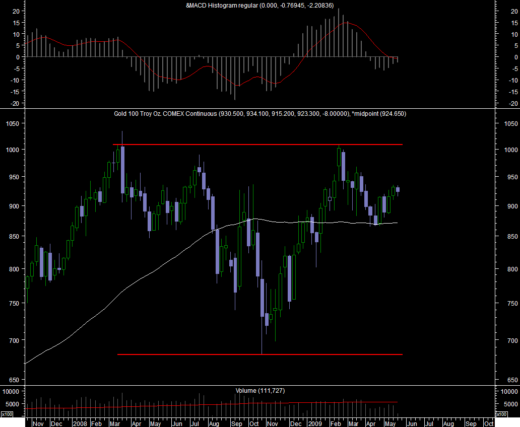 há uns meses atras defendia que o ouro deveria entrar numa forte correcção enquanto outros utilizadores defendiam que o ouro iria continuar a subir, pois bem nem corrigiu fortemente nem subiu tem andado um pouco lateralizar, na minha opinao tecnicamente desinteressante ultimamente.