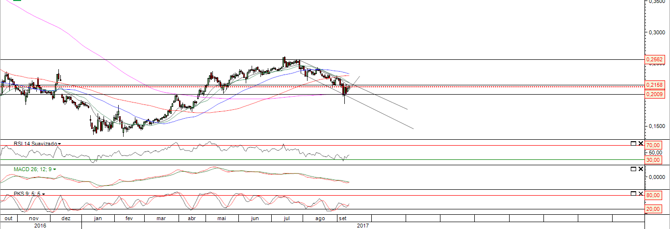 Cotação cai desde meados de julho desde 0.26 para atuais 0.21.