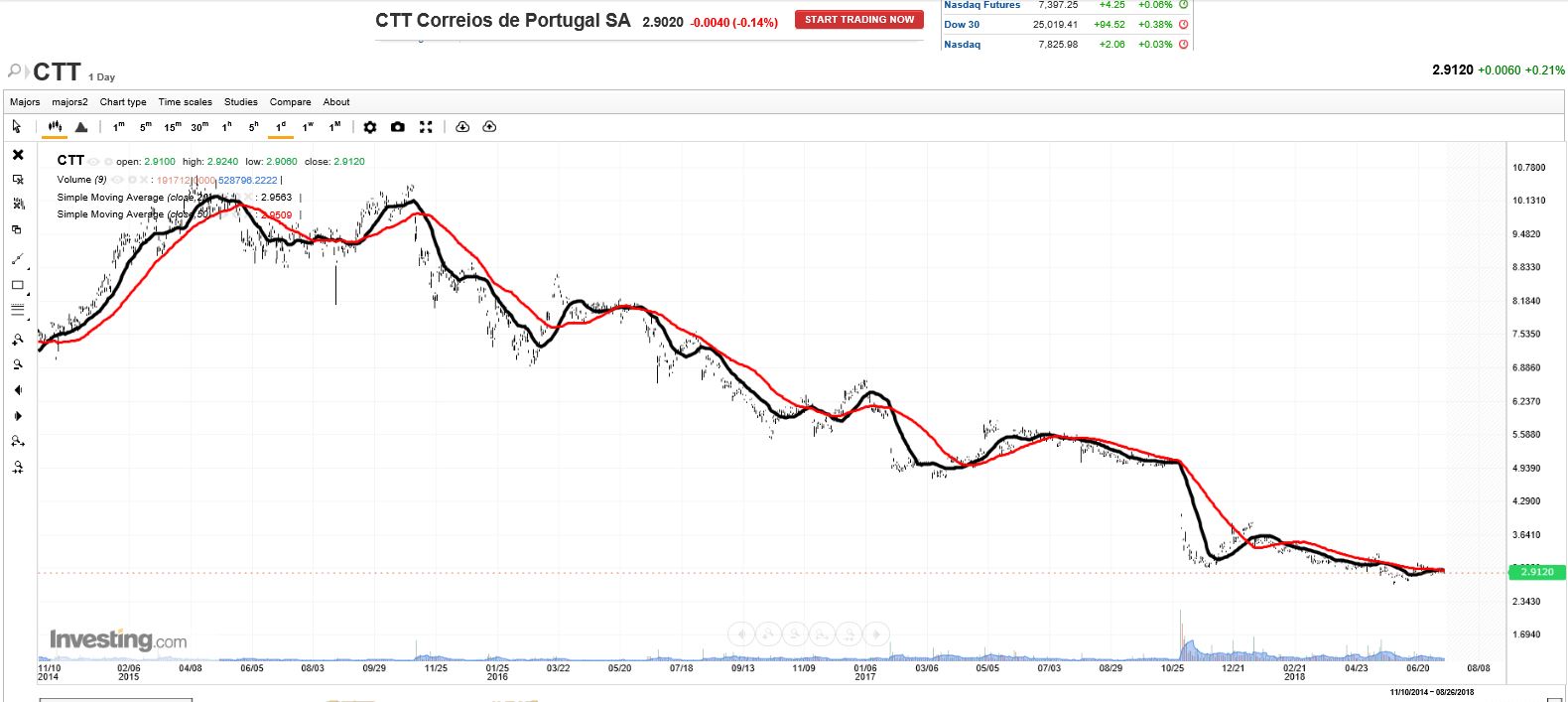 A probabilidade dos CTT atingirem valores abaixo dos €2, é directamente proporcional ao chumbo do OE para 2019, e à queda da geringonça antes das eleições...