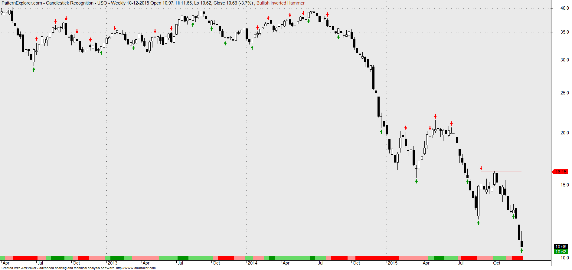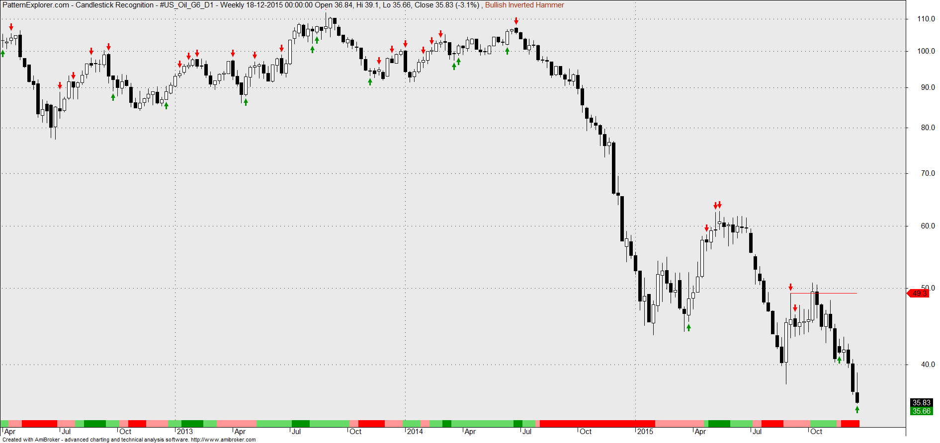 padrão de velas semanal em martelo invertido, possível erro (precisa de confirmação)