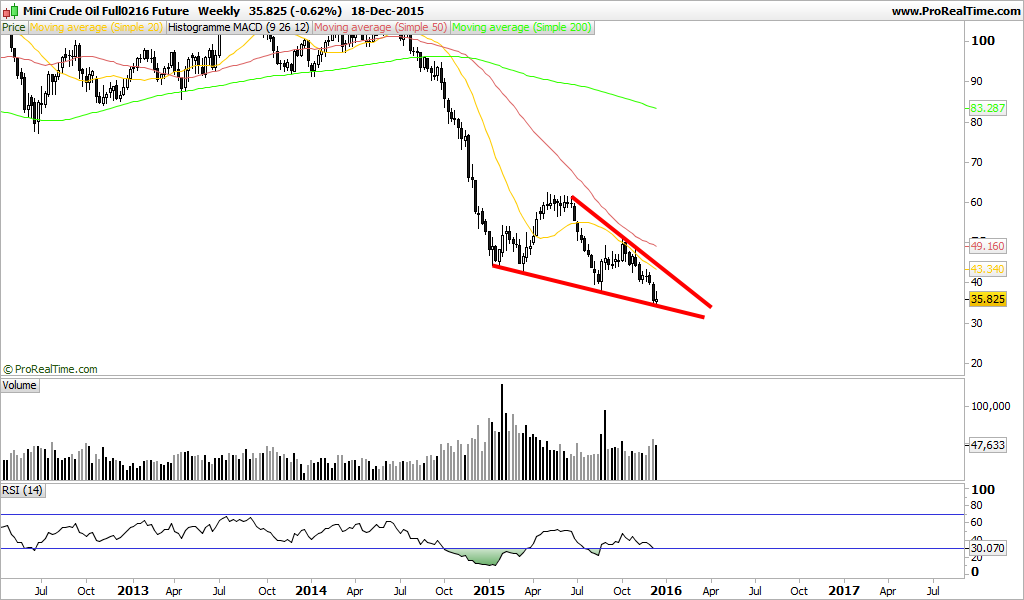 J Alves, os padrões são válidos em qualquer time frame pois o preço pode ser visto como um fractal. se a cunha pode parecer longa no diário, no semanal já não é. para além da cunha há a divergência de momentum. contagens de elliott tb apontam para que isto seja uma quinta em diagonal. depois há o suporte/pivot low no crash em 2008 para que muita gente está olhar.
