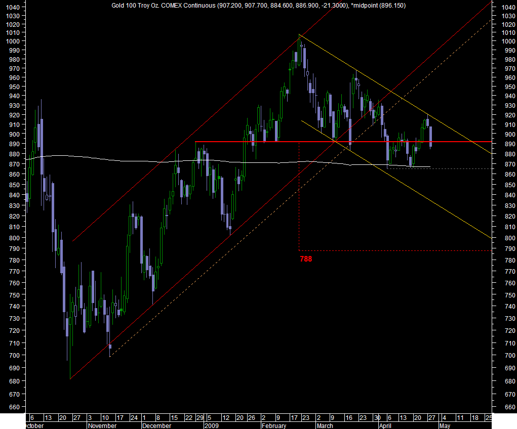 Este suporte é uma das grandes esperanças dos bulls do ouro. Vamos ver até onde aguenta.