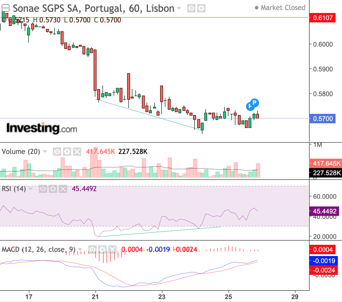 Hoje pode ser o dia da Sonae dar um sinal de força numa tentativa de sair dessa lateralização e luta entre suporte e resistência de muitíssimo curto prazo