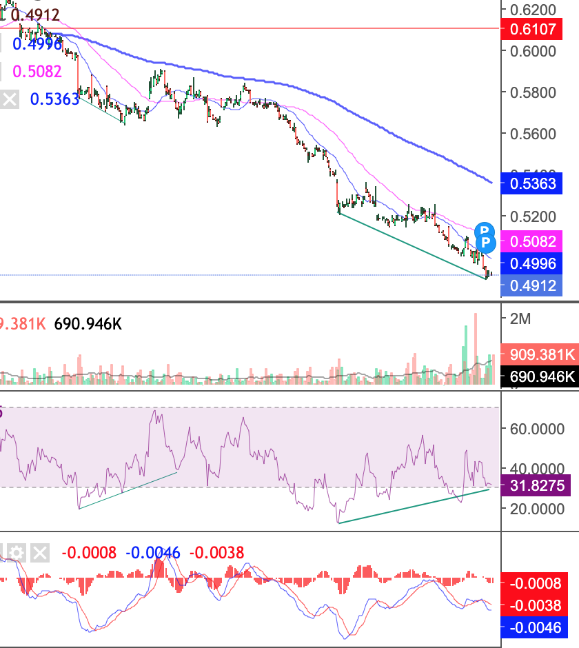 A Sonae continua a não conseguir quebrar a resistência dos 0,62 e hoje está a afastar-se bastante dela. Uma das acções chave par ao PSI está dominada pelos ursos em todos os horizontes temporais. Um péssimo sinal para o mercado.