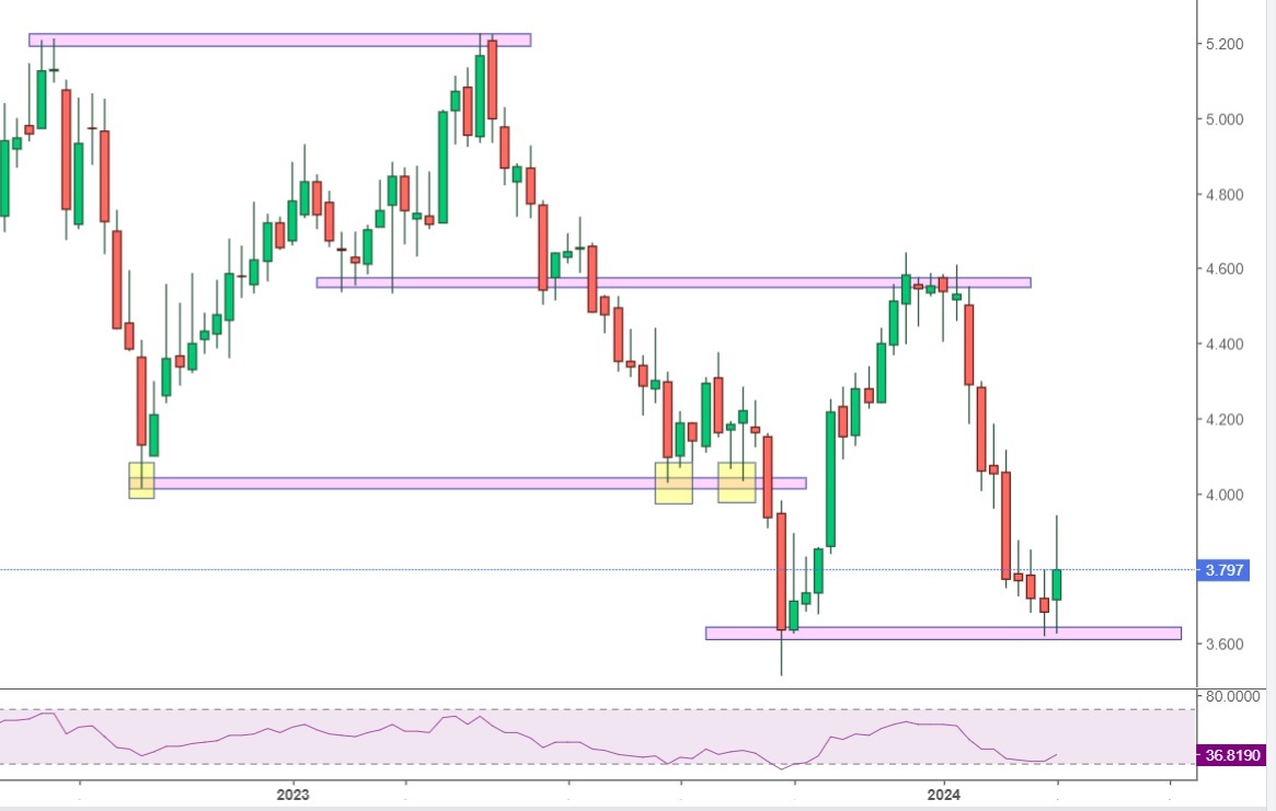 4) quebra da tendencia de queda do RSI desde 2023DEZ.