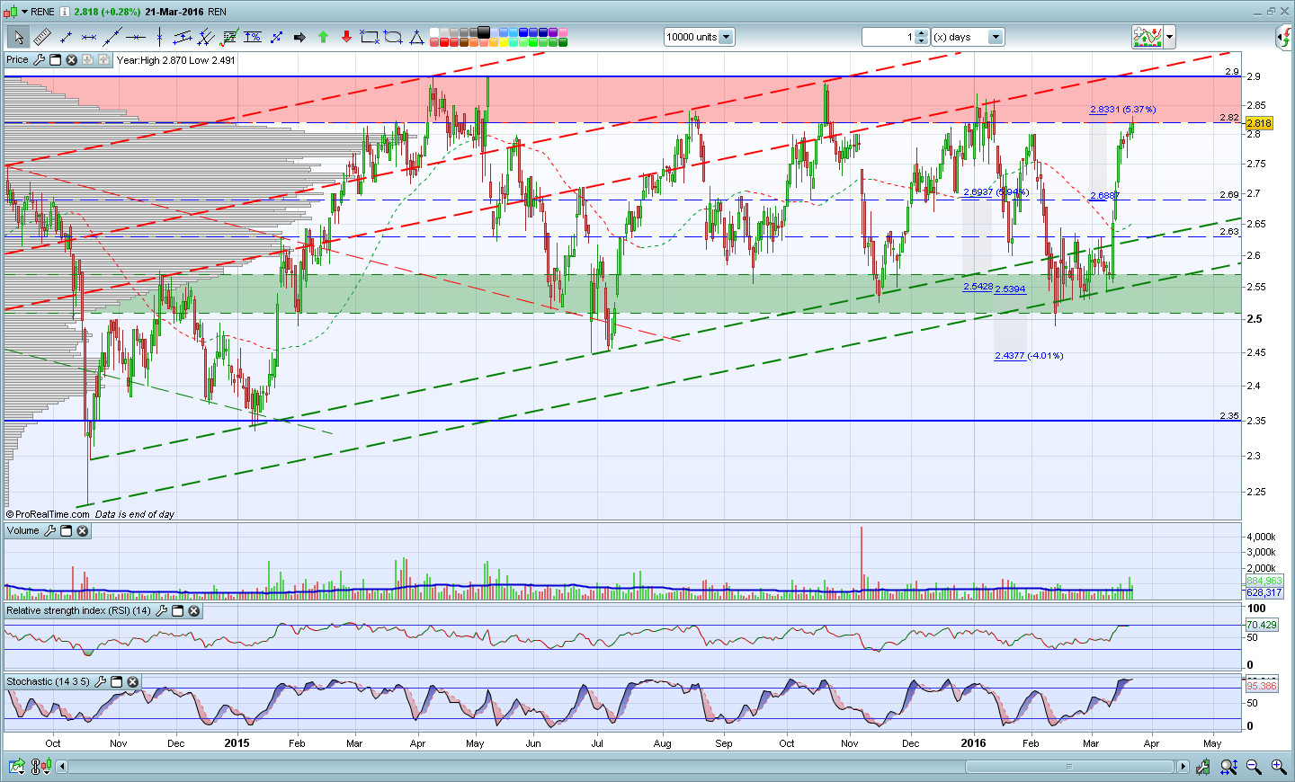Aqui ficam os gráficos actualizados numa altura em que a Ren está praticamente colada à sua resistência e está "sobrecomprada", pelo que é difícil nos próximos dias acreditar na continuação deste movimento.