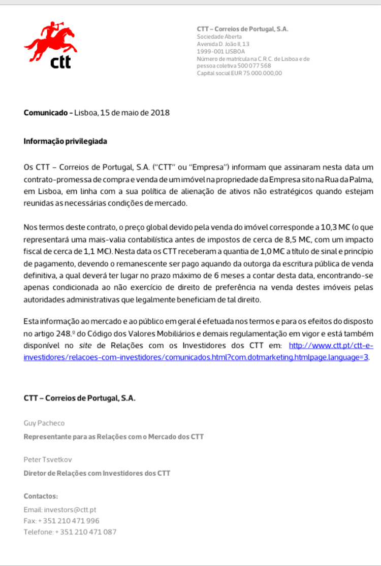 Re: CTT - a mais recente acção da Bolsa portuguesa